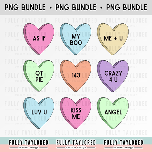 Classic Candy Color Hearts PNG BUNDLE for Sublimation or Print (Digital Download) (4 Files)