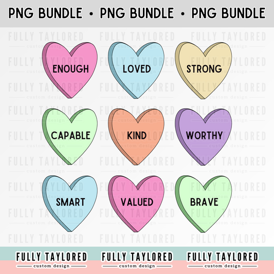 Candy Color Heart Affirmations PNG BUNDLE for Sublimation or Print (Digital Download) (4 Files)