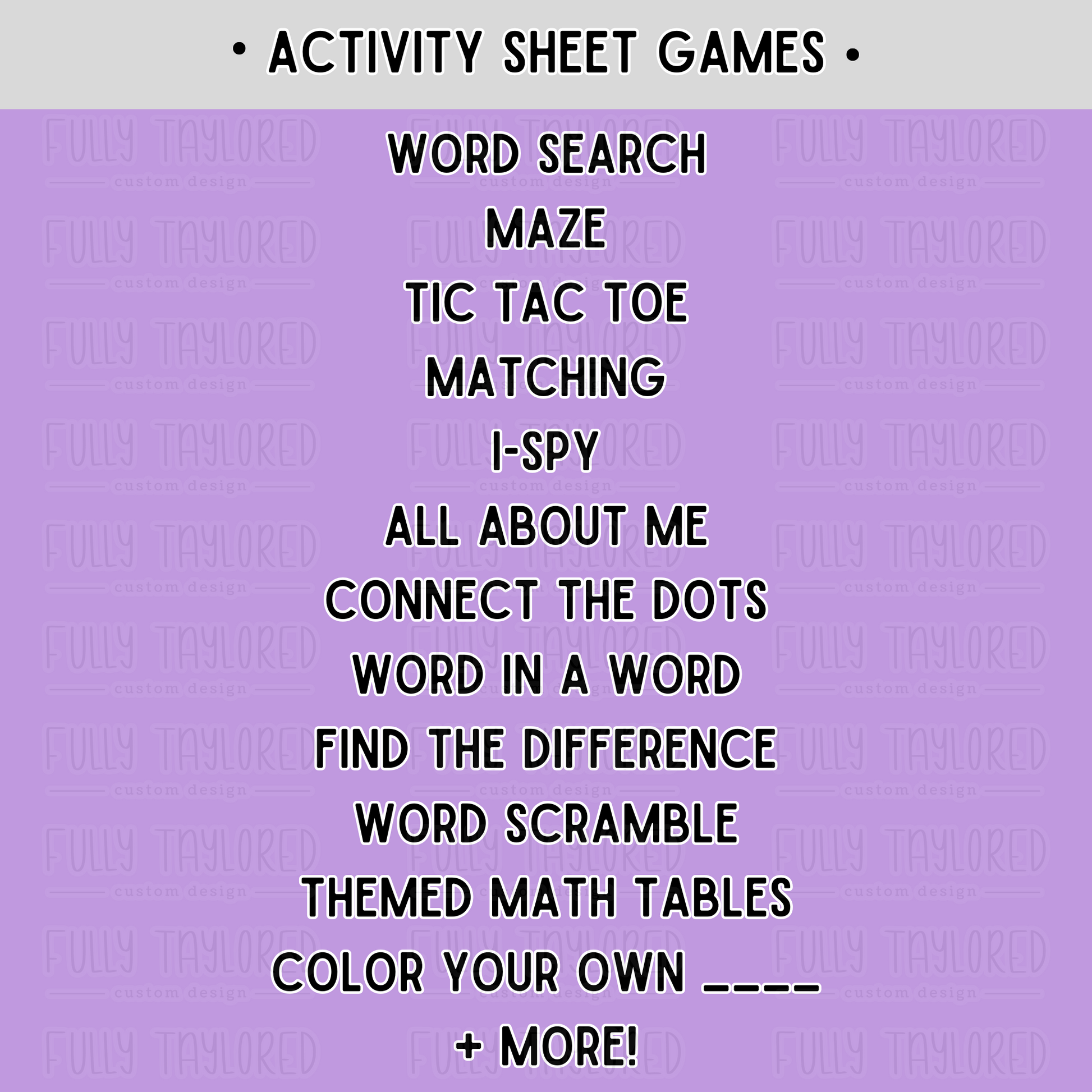 Make a lasting impression with these coloring and activity packs for Halloween. The sheets/pack styles shown are premade, custom designs (created by Fully Taylored).